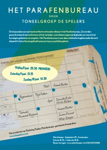 Op 8 juni a.s. gaat mijn nieuwe toneelstuk Het Parafenbureau in het Amsterdamse Pleintheater in première. Ik speel deze keer zelf ook een rol.