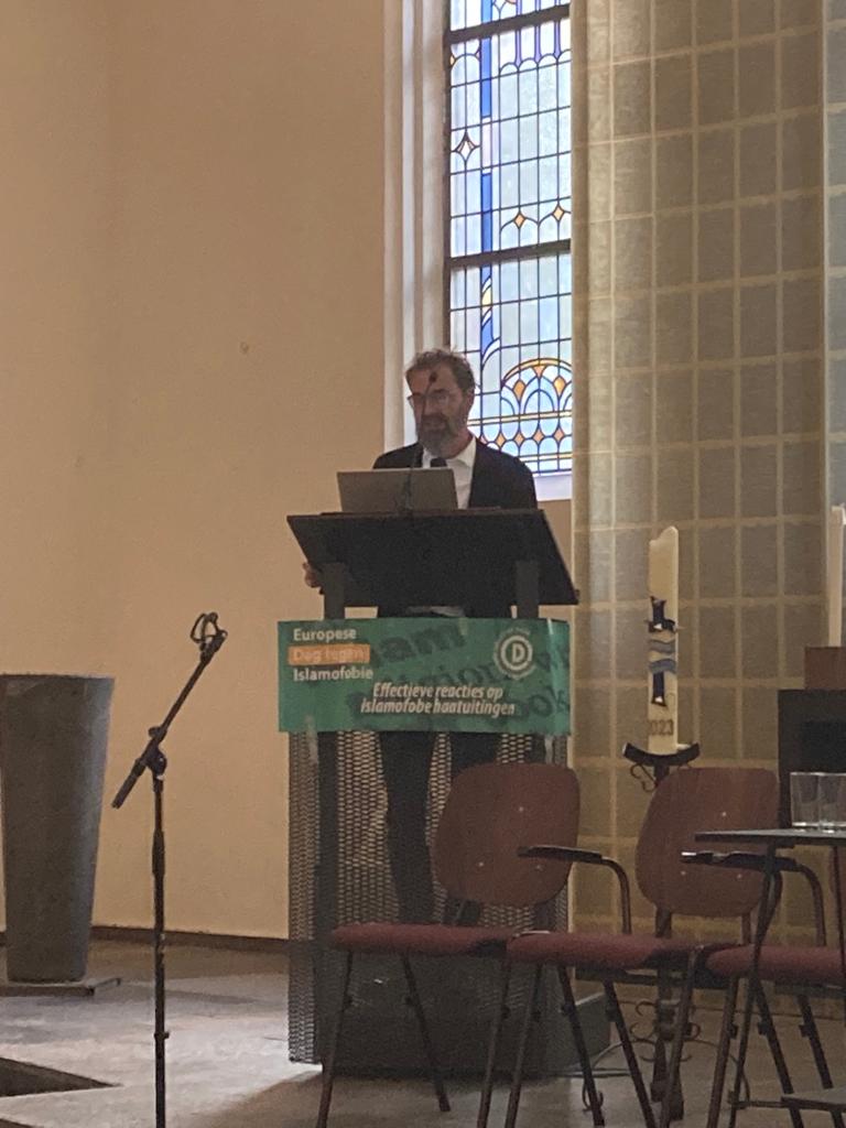 Martijn de Koning van de Nijmeegse Radboud Universiteit beklimt het preekgestoelte in de kerk en opent de bijeenkomst met een inleiding waarin hij acties als koranverbrandingen betitelt als ‘spektakelactivisme’. Dit zijn volgens hem vormen van protest die niet alleen met inhoud, maar ook met visuele en auditieve vormen een situatie creëren waar derden bijna noodzakelijkerwijs op moeten reageren. Door middel van een spektakel wordt geprobeerd een controverse te scheppen.