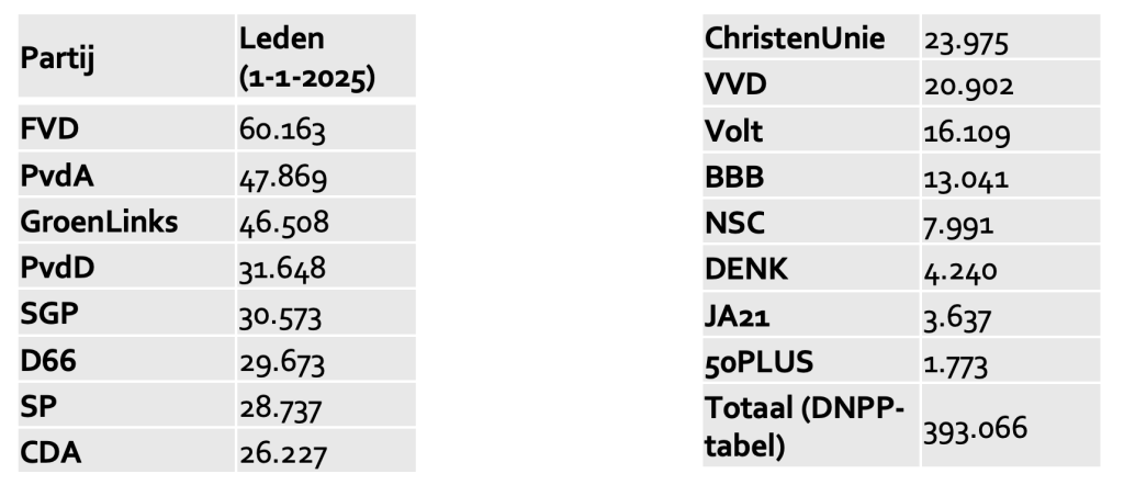 Dit ecosysteem bestaat in de eerste plaats uit de leden. Op 1 januari 2025 had FVD volgens het Documentatiecentrum Nederlandse Politieke Partijen (DNPP) ruim 60.000 leden. Volgens FVD was dit op 1 januari 2026 inmiddels gegroeid tot ruim 70.000 leden. Hiermee heeft Forum verreweg de meeste leden van alle politieke partijen. En dat betekent inkomsten. Niet alleen omdat de leden contributie betalen, maar ook omdat FVD hierdoor een relatief groot deel ontvangt van de subsidiegelden die beschikbaar zijn voor politieke partijen.